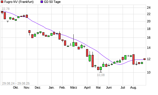 Mit dem Rücksetzer auf 11,86 EUR hat die Fugro-Aktie am 28.08.2025 die 50-Tage-Linie nach unten gekreuzt.