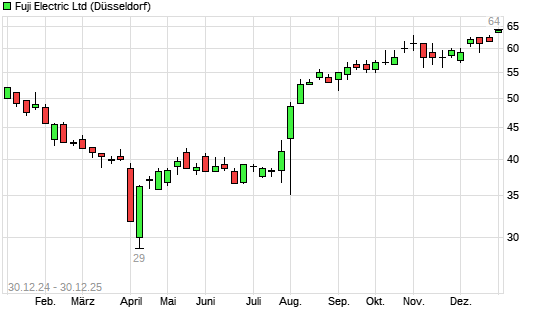 Mit dem Anstieg auf 64,50 EUR hat die Fuji Electric-Aktie (ISIN JP3820000002) am 29.12.2025 ein neues All-Time-High erreicht und damit den Kurs vom 12.04.2024 eingestellt.Die Fuji Electric-Aktie ...weiterlesen