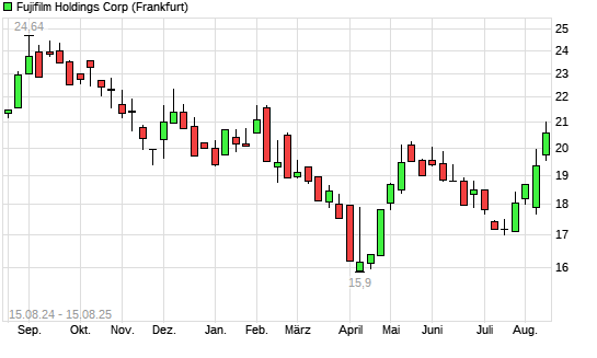 Mit dem Anstieg auf 20,41 EUR hat die Fuji Film-Aktie (ISIN JP3814000000) am 14.08.2025 ein neues 6-Monats-Hoch erreicht und damit den Kurs vom 12.08.2025 eingestellt.