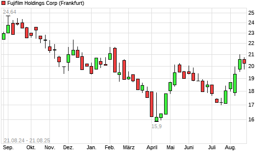 Mit dem Anstieg auf 20,61 EUR hat die Fuji Film-Aktie (ISIN JP3814000000) am 20.08.2025 ein neues 6-Monats-Hoch erreicht und damit den Kurs vom 15.08.2025 eingestellt.