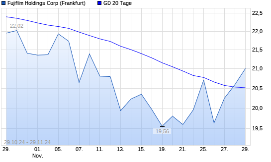 Mit dem Anstieg auf 20,59 EUR hat die Fuji Film-Aktie am 28.11.2024 die 20-Tage-Linie nach oben gekreuzt.