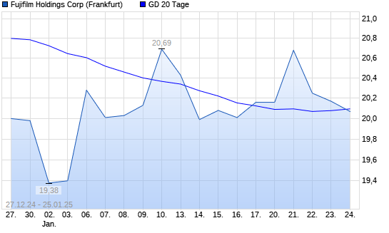 Mit dem Rücksetzer auf 20,07 EUR hat die Fuji Film-Aktie am 24.01.2025 die 20-Tage-Linie nach unten gekreuzt.