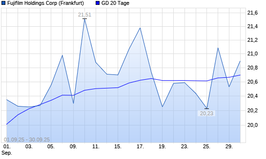 Mit dem Rücksetzer auf 20,53 EUR hat die Fuji Film-Aktie am 29.09.2025 die 20-Tage-Linie nach unten gekreuzt.