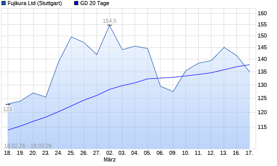 Mit dem Rücksetzer auf 135,50 EUR hat die Fujikura-Aktie am 17.03.2026 die 20-Tage-Linie nach unten gekreuzt.