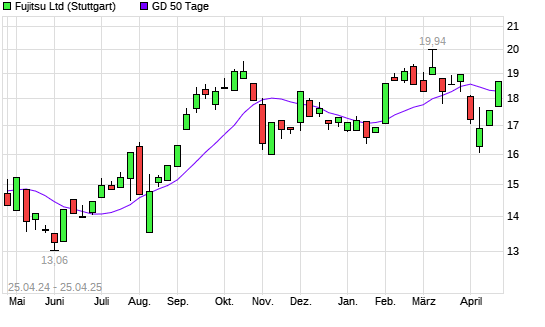 Mit dem Anstieg auf 18,48 EUR hat die Fujitsu-Aktie am 24.04.2025 die 50-Tage-Linie nach oben gekreuzt.