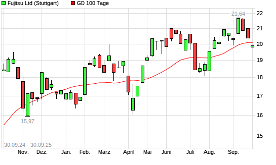 Mit dem Rücksetzer auf 19,48 EUR hat die Fujitsu-Aktie am 29.09.2025 die 100-Tage-Linie nach unten gekreuzt.