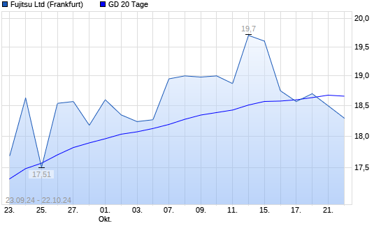Mit dem Rücksetzer auf 18,50 EUR hat die Fujitsu-Aktie am 21.10.2024 die 20-Tage-Linie nach unten gekreuzt.