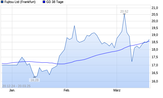 Mit dem Rücksetzer auf 18,48 EUR hat die Fujitsu-Aktie am 19.03.2025 die 38-Tage-Linie nach unten gekreuzt.