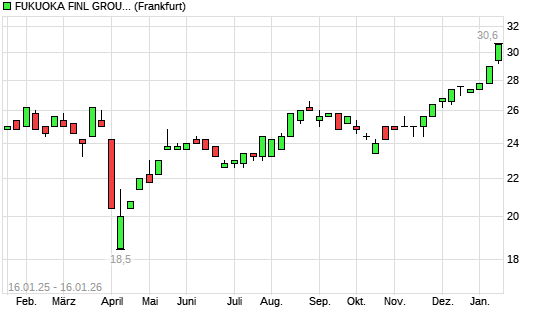 Mit dem Anstieg auf 30,40 EUR hat die Fukuoka Financial Group-Aktie (ISIN JP3805010000) am 15.01.2026 ein neues All-Time-High erreicht und damit den Kurs vom 14.01.2026 eingestellt.