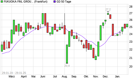 Mit dem Anstieg auf 25,20 EUR hat die Fukuoka Financial Group-Aktie am 28.01.2025 die 50-Tage-Linie nach oben gekreuzt.