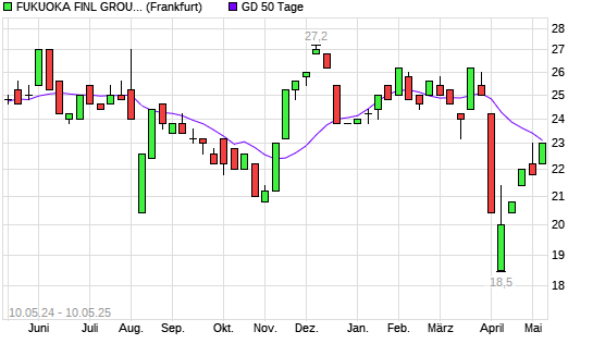 Mit dem Anstieg auf 23,00 EUR hat die Fukuoka Financial Group-Aktie am 09.05.2025 die 50-Tage-Linie nach oben gekreuzt.