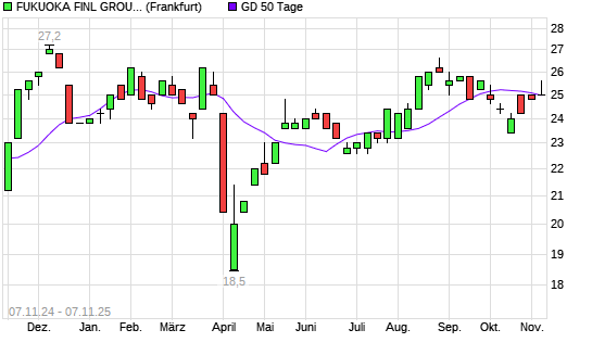 Mit dem Anstieg auf 25,20 EUR hat die Fukuoka Financial Group-Aktie am 06.11.2025 die 50-Tage-Linie nach oben gekreuzt.