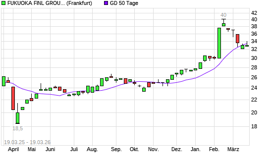 Mit dem Anstieg auf 34,00 EUR hat die Fukuoka Financial Group-Aktie am 18.03.2026 die 50-Tage-Linie nach oben gekreuzt.