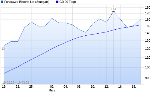 Mit dem Anstieg auf 155,00 EUR hat die Furukawa Electric-Aktie am 18.03.2026 die 20-Tage-Linie nach oben gekreuzt.