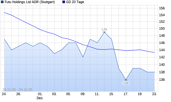 Mit dem Rücksetzer auf 134,00 EUR hat die Futu Holdings ADR-Aktie am 23.12.2025 die 20-Tage-Linie nach unten gekreuzt.