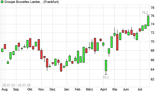 Mit dem Anstieg auf 76,20 EUR hat die GBL-Aktie (ISIN BE0003797140) am 24.07.2025 ein neues 12-Monats-Hoch erreicht und damit den Kurs vom 23.07.2025 eingestellt.