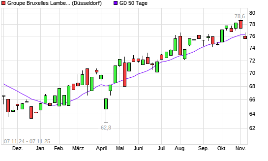Mit dem Anstieg auf 76,75 EUR hat die GBL-Aktie am 06.11.2025 die 50-Tage-Linie nach oben gekreuzt.