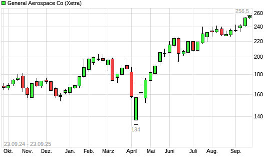 Mit dem Anstieg auf 252,50 EUR hat die GE Aerospace (ex General Electric)-Aktie (ISIN US3696043013) am 22.09.2025 ein neues 10-Jahres-Hoch erreicht und damit den Kurs vom 18.09.2025 eingestellt.