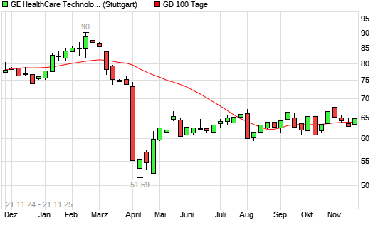 Mit dem Anstieg auf 64,60 EUR hat die GE Healthcare Technologies-Aktie am 20.11.2025 die 100-Tage-Linie nach oben gekreuzt.