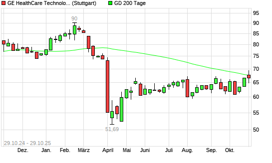 Mit dem Anstieg auf 68,11 EUR hat die GE Healthcare Technologies-Aktie am 28.10.2025 die 200-Tage-Linie nach oben gekreuzt.