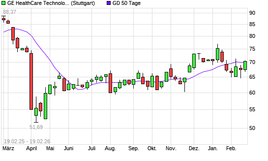 Mit dem Anstieg auf 70,35 EUR hat die GE Healthcare Technologies-Aktie am 18.02.2026 die 50-Tage-Linie nach oben gekreuzt.