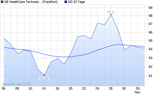 Mit dem Rücksetzer auf 64,23 EUR hat die GE Healthcare Technologies-Aktie am 03.11.2025 die 20-Tage-Linie nach unten gekreuzt.