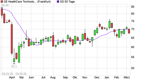 Mit dem Rücksetzer auf 68,72 EUR hat die GE Healthcare Technologies-Aktie am 02.03.2026 die 50-Tage-Linie nach unten gekreuzt.