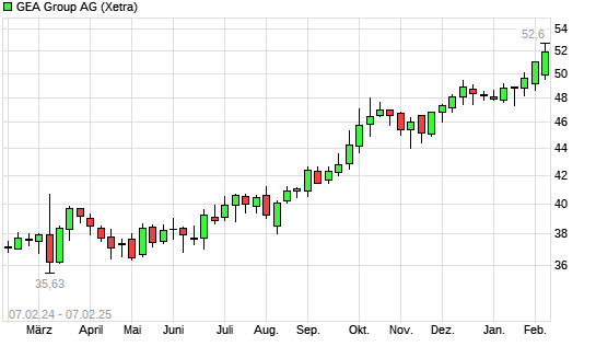 Mit dem Anstieg auf 51,45 EUR hat die GEA Group-Aktie (ISIN DE0006602006) am 06.02.2025 ein neues 10-Jahres-Hoch erreicht und damit den Kurs vom 31.01.2025 eingestellt.
