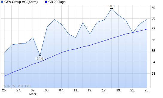 Mit dem Anstieg auf 57,70 EUR hat die GEA Group-Aktie am 24.03.2025 die 20-Tage-Linie nach oben gekreuzt.