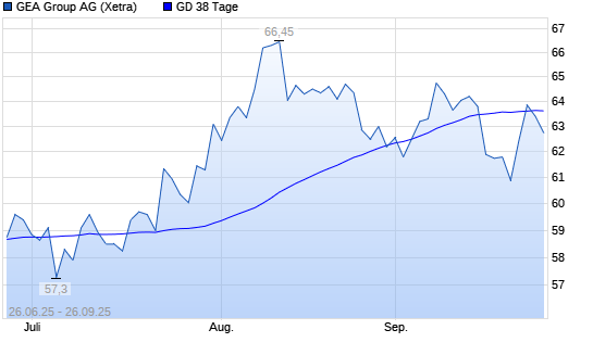 Mit dem Rücksetzer auf 63,25 EUR hat die GEA Group-Aktie am 25.09.2025 die 38-Tage-Linie nach unten gekreuzt.