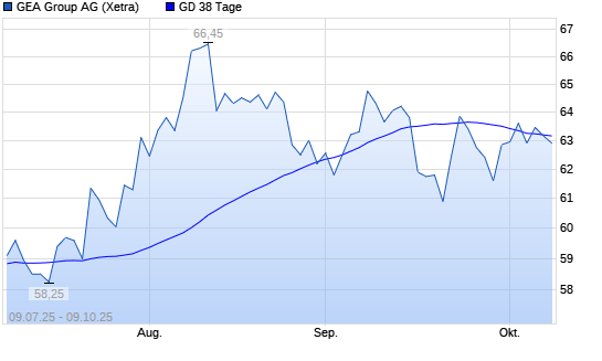 Mit dem Rücksetzer auf 62,55 EUR hat die GEA Group-Aktie am 08.10.2025 die 38-Tage-Linie nach unten gekreuzt.
