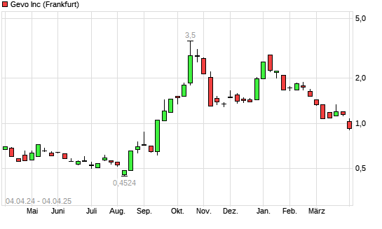 Mit dem Rücksetzer auf 0,97 EUR hat die GEVO-Aktie (ISIN US3743964062) am 03.04.2025 ein neues 6-Monats-Tief erreicht und damit den Kurs vom 02.04.2025 eingestellt.