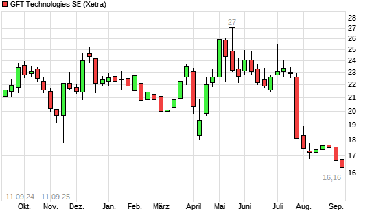 Mit dem Rücksetzer auf 16,26 EUR hat die GFT Technologies-Aktie (ISIN DE0005800601) am 10.09.2025 ein neues 3-Jahres-Tief erreicht und damit den Kurs vom 09.09.2025 eingestellt.