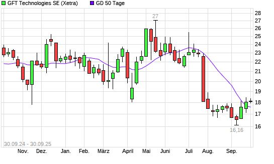 Mit dem Anstieg auf 18,26 EUR hat die GFT Technologies-Aktie am 29.09.2025 die 50-Tage-Linie nach oben gekreuzt.