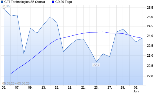 Mit dem Rücksetzer auf 23,95 EUR hat die GFT Technologies-Aktie am 02.06.2025 die 20-Tage-Linie nach unten gekreuzt.