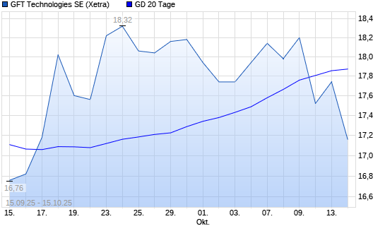 Mit dem Rücksetzer auf 17,44 EUR hat die GFT Technologies-Aktie am 14.10.2025 die 20-Tage-Linie nach unten gekreuzt.