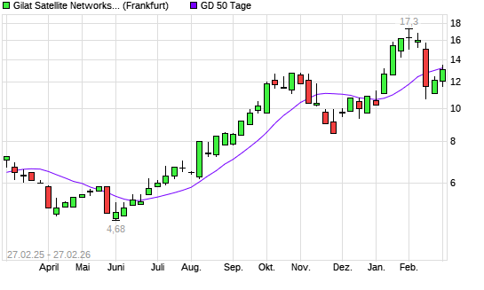 Mit dem Anstieg auf 13,30 EUR hat die GILAT SATELLITE NETWORKS-Aktie am 26.02.2026 die 50-Tage-Linie nach oben gekreuzt.