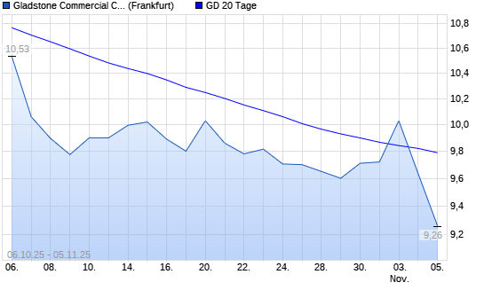 Mit dem Rücksetzer auf 9,64 EUR hat die GLADSTONE COMMERCIAL CORPORATI-Aktie am 04.11.2025 die 20-Tage-Linie nach unten gekreuzt.