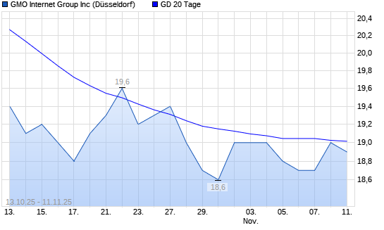 Mit dem Anstieg auf 19,10 EUR hat die GMO INTERNET-Aktie am 10.11.2025 die 20-Tage-Linie nach oben gekreuzt.