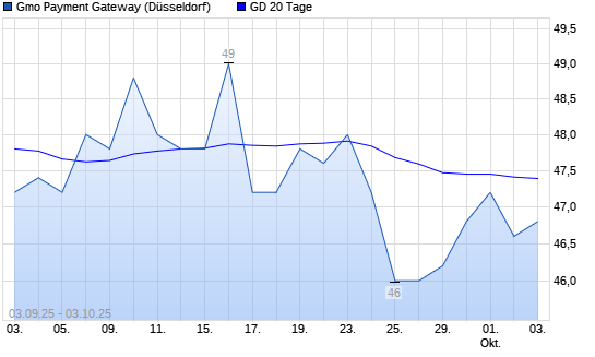 Mit dem Rücksetzer auf 46,60 EUR hat die GMO Payment Gateway-Aktie am 02.10.2025 die 20-Tage-Linie nach unten gekreuzt.