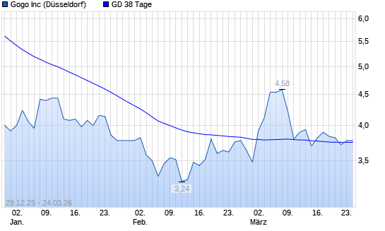 Mit dem Rücksetzer auf 3,58 EUR hat die GOGO-Aktie am 23.03.2026 die 38-Tage-Linie nach unten gekreuzt.