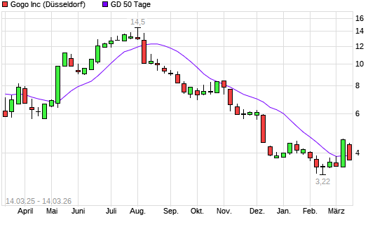 Mit dem Rücksetzer auf 3,82 EUR hat die GOGO-Aktie am 13.03.2026 die 50-Tage-Linie nach unten gekreuzt.