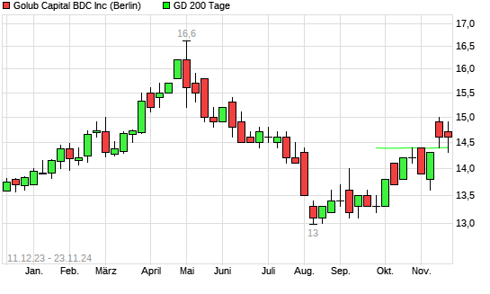 Mit dem Anstieg auf 14,70 EUR hat die GOLUB CAPITAL BDC-Aktie am 22.11.2024 die 200-Tage-Linie nach oben gekreuzt.