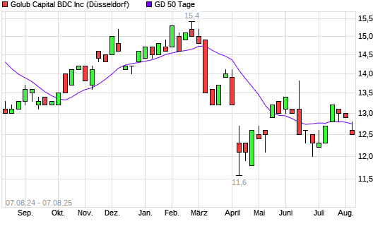 Mit dem Rücksetzer auf 12,80 EUR hat die GOLUB CAPITAL BDC-Aktie am 06.08.2025 die 50-Tage-Linie nach unten gekreuzt.