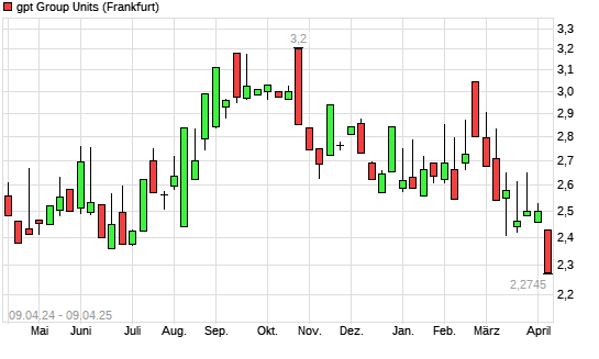 Mit dem Rücksetzer auf 2,36 EUR hat die GPT Group-Aktie (ISIN AU000000GPT8) am 08.04.2025 ein neues 6-Monats-Tief erreicht und damit den Kurs vom 13.03.2025 eingestellt.