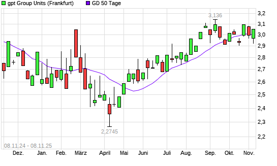 Mit dem Anstieg auf 3,05 EUR hat die GPT Group-Aktie am 07.11.2025 die 50-Tage-Linie nach oben gekreuzt.