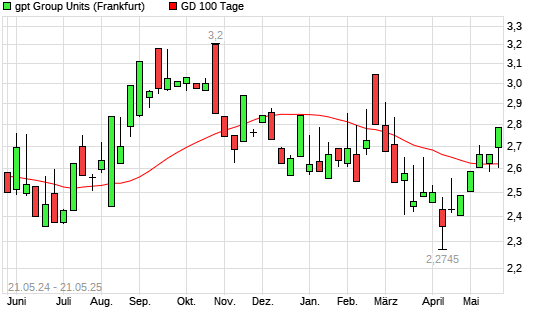 Mit dem Rücksetzer auf 2,60 EUR hat die GPT Group-Aktie am 20.05.2025 die 100-Tage-Linie nach unten gekreuzt.