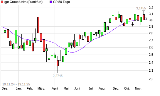 Mit dem Rücksetzer auf 3,00 EUR hat die GPT Group-Aktie am 18.11.2025 die 50-Tage-Linie nach unten gekreuzt.Die GPT Group-Aktie befindet sich seit dem 01.07.2025 im langfristigen Aufwärtstrend ...weiterlesen