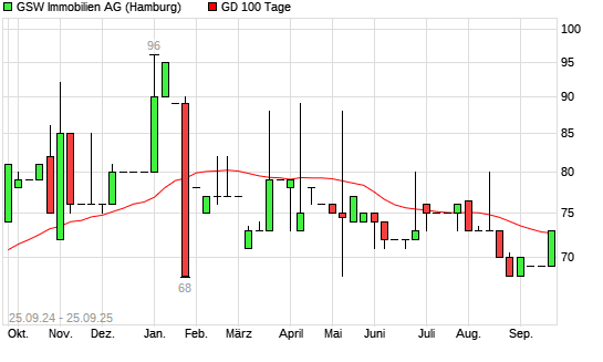 Mit dem Anstieg auf 73,00 EUR hat die GSW Immobilien-Aktie am 24.09.2025 die 100-Tage-Linie nach oben gekreuzt.