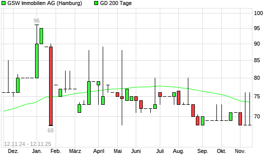 Mit dem Anstieg auf 76,00 EUR hat die GSW Immobilien-Aktie am 11.11.2025 die 200-Tage-Linie nach oben gekreuzt.